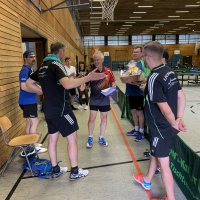 Ein spannendes Finale entwickelte sich im Doppel. Hier trafen Timo Neumann (SV Weiherhof e.V.) und Karsten Reiß (TV 1848 Erlangen) auf Janik Welsch (CVJM Unterasbach) und Marius Zaus (DJK SpVgg Effeltrich) aufeinander. Bei den ersten beiden Sätzen konnte jedes Team einmal mit 11:9 Bällen jeweils einen Satz gewinnen. Die nächsten beiden Sätzen teilten sich beide Doppel wieder unter sich auf - diesmal mit je 11:8 Bällen. Mit dem 5. Satz konnten schließlich Welch / Zaus den Pokal erobern.